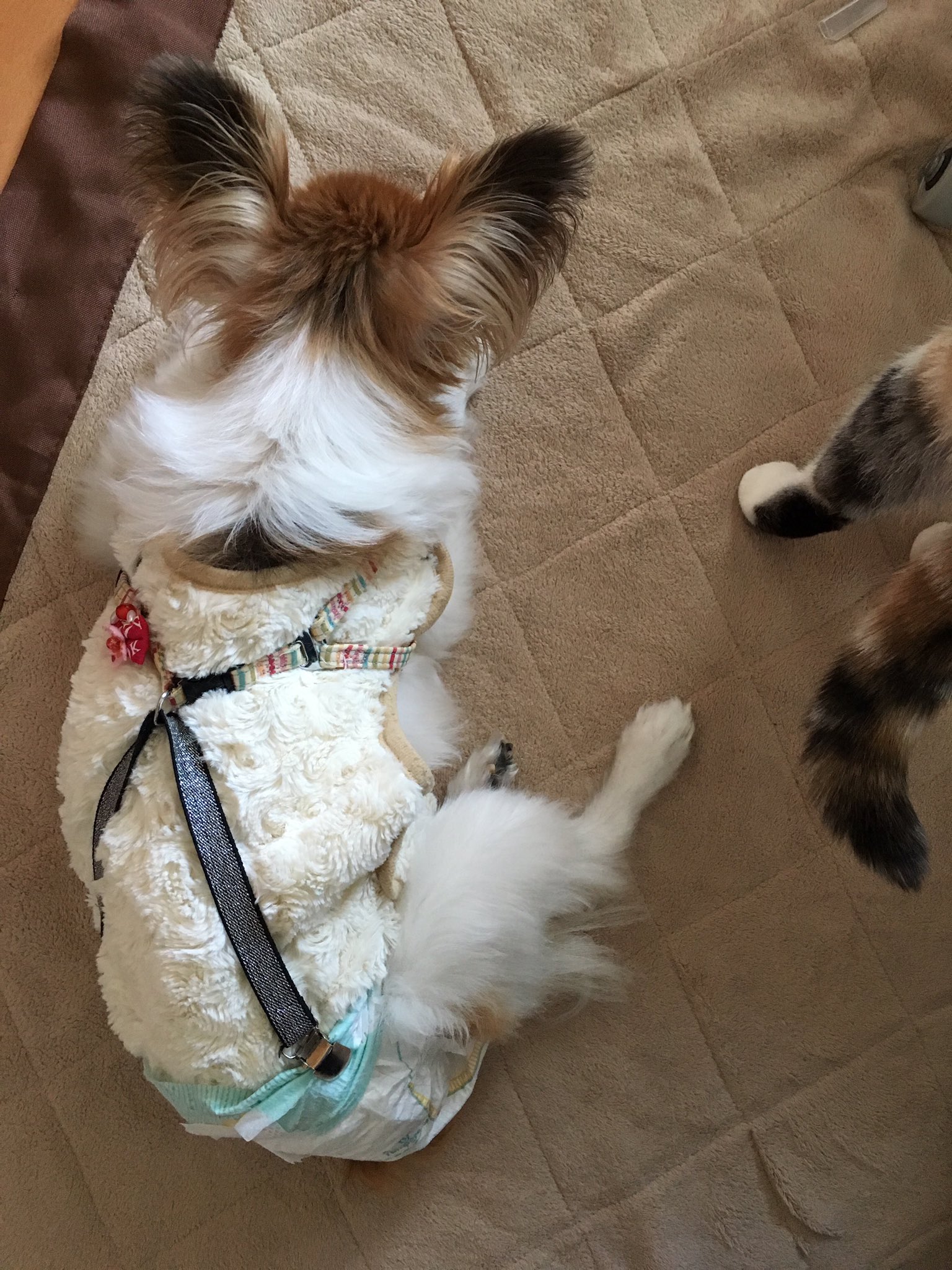 圧 あつ On Twitter サスペンダーの方は友人が作ってくれました 100均で子供用サスペンダーを購入して分解 お散歩用のハーネスの散歩紐をつけるところを利用してv字になるように通して あーちゃんの胴の長さを確認して金具を縫い付けてくれました Https T