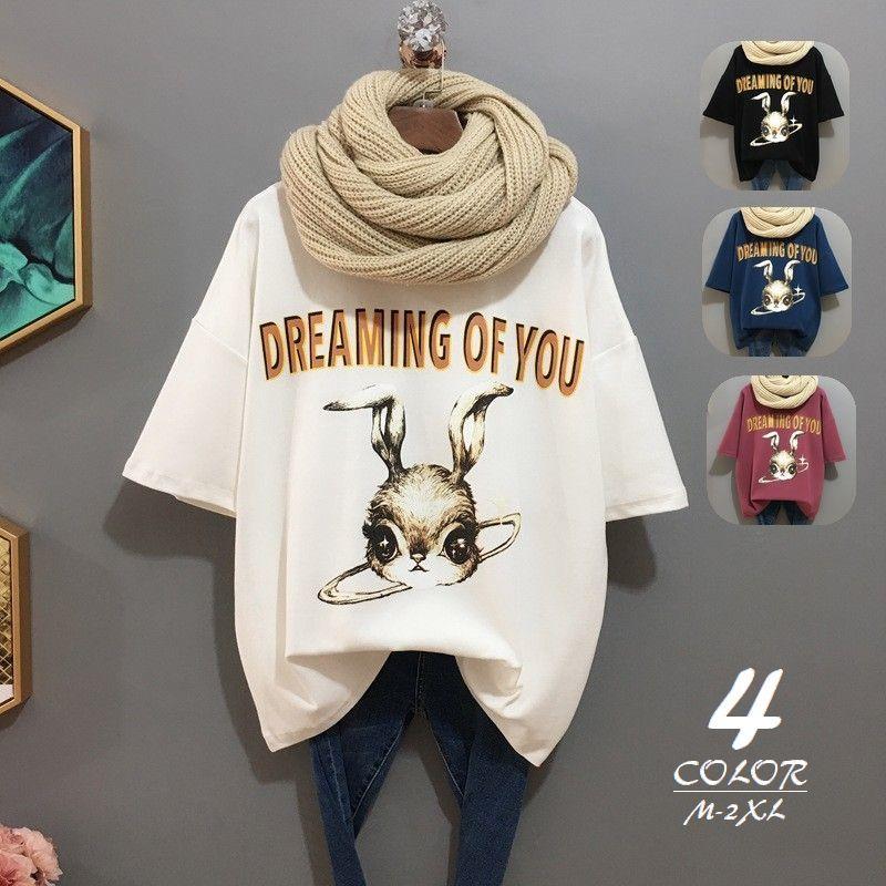 Tシャツ カットソー レディース 女性 婦人服 トップス 半袖 ロゴ 英字 ウサギ プリント カジュアル ラフ ゆったり 女子 プラスナオ Paypayモール店 通販 Paypayモール