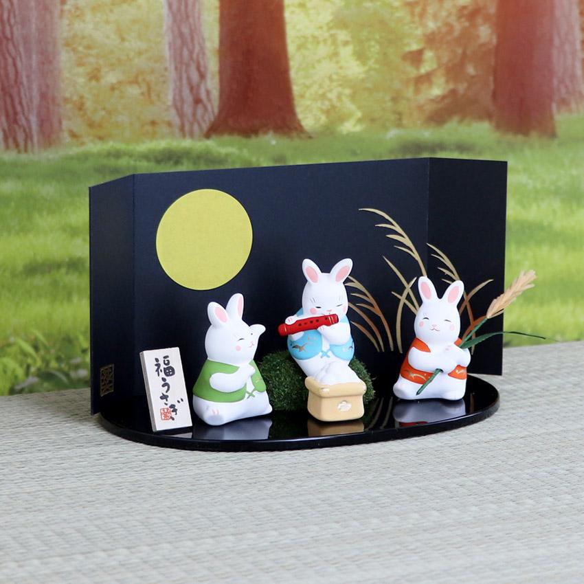 正絹 うさぎ十五夜 お団子 リュウコドウ 和雑貨 置物 品質保証 Sale 送料無料 格安