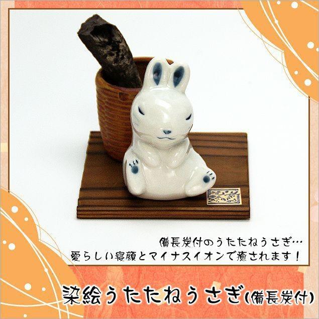 和雑貨 陶器 うさぎ ウサギ 置物 染絵うたたねうさぎ 備長炭付 高さ 7 5cm 木札にお好きな言葉を毛筆でお書きします Augcg 494 長生堂 通販 Yahoo ショッピング