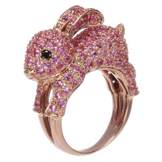 360度愛されデザイン Loveアニマルジュエリー K18pgピンクサファイア ブラックダイヤモンドラビットリング ブラックダイヤモンド ジュエリー ダイヤモンド