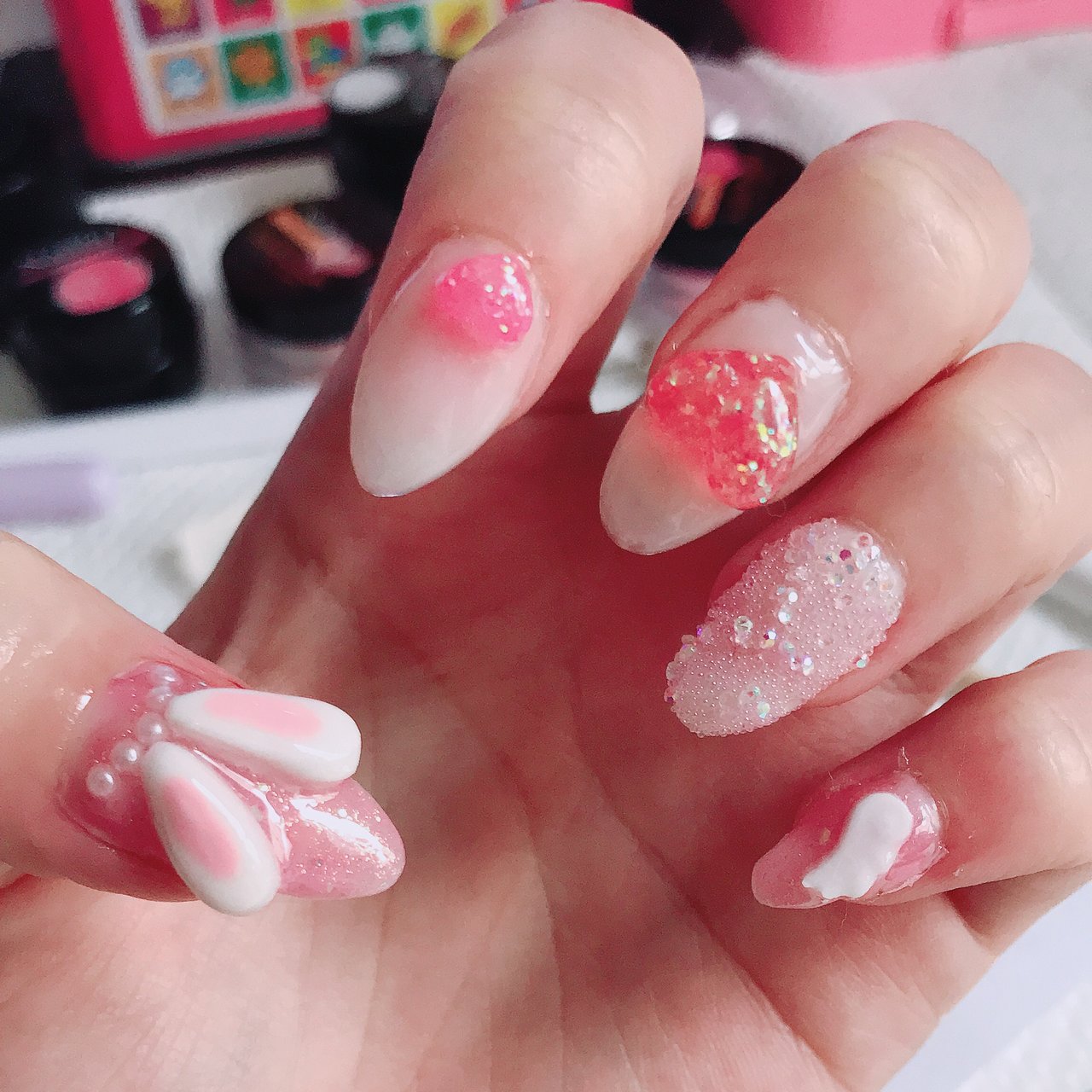 うさぎ 3d ネイル. Color s blue 渋谷店 カラーズ. ネイルコレクション ピンク nail collection pink ジェル定額 8480 アリ.