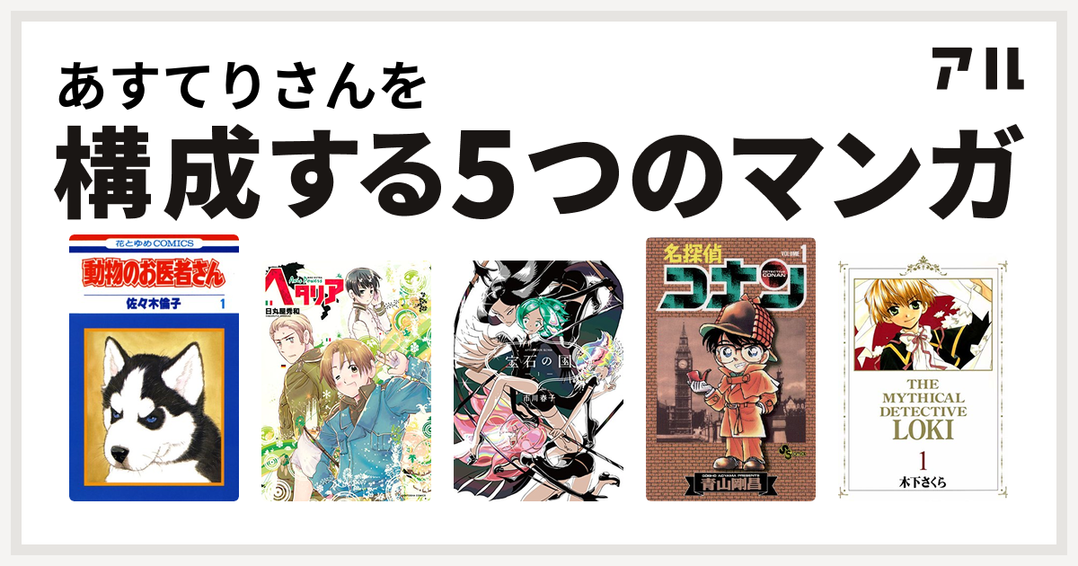 あすてりさんを構成するマンガは動物のお医者さん ヘタリア Axis Powers 宝石の国 名探偵コナン 魔探偵ロキ 私を構成する5つのマンガ アル