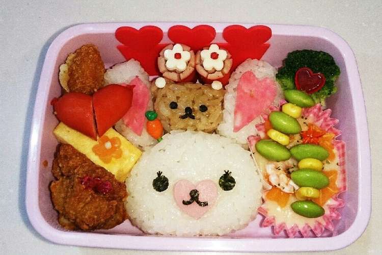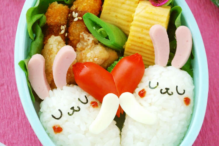 バレンタインキャラ弁 仲良しうさぎのおにぎり弁当 初級 ザッキー のキャラ弁life