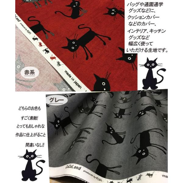 Amazon ココランド 小さなネコ レッド オックス生地 ねこ 猫 生地 布地 ぬの プリント コットン生地 入園 布 生地 通販