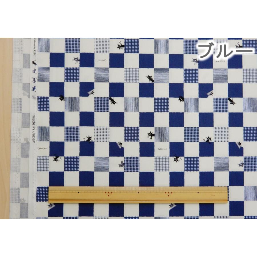Amazon 猫柄 生地 Cocoland ブルー ランダムチェック ココランド オックス 布 布地 手芸 1m単位 布 生地 通販