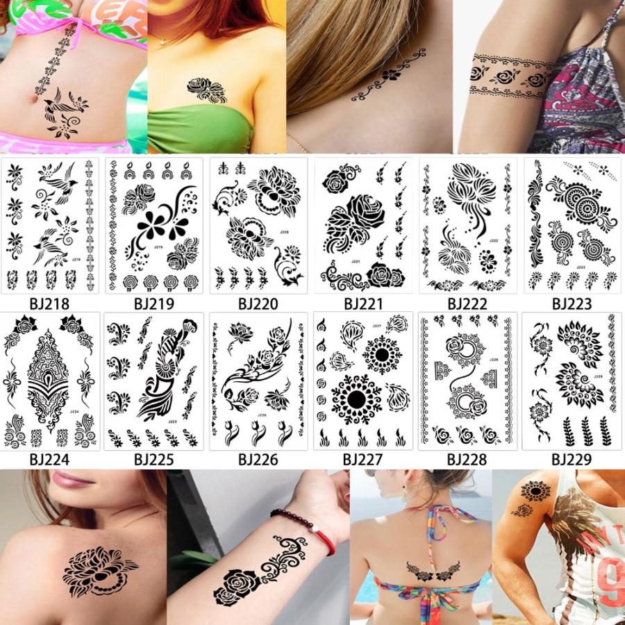 タトゥーシール 防水 大判 ヘナ ヘナタトゥー ボディーシール Bj218 229 花 鳥 刺青 入れ墨 墨 隠す モノクロ 白黒 ボディアート リアル オマケ付 Tatoo 242 ちゅらネット にふぇーでーびる 通販 Yahoo ショッピング