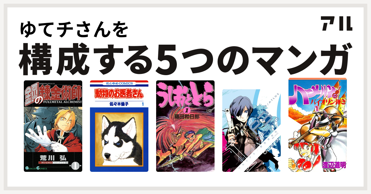 ゆてチさんを構成するマンガは鋼の錬金術師 動物のお医者さん うしおととら ペルソナ3 ハーメルンのバイオリン弾き 私を構成する5つのマンガ アル
