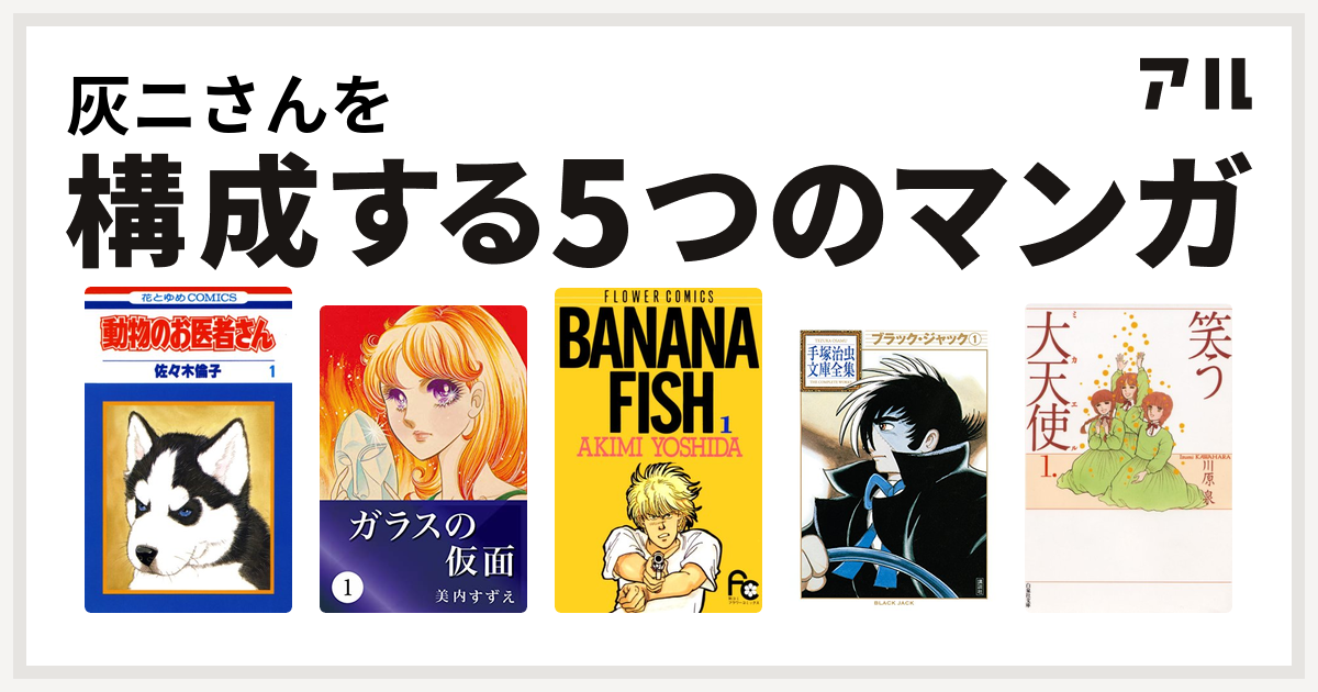 灰ニさんを構成するマンガは動物のお医者さん ガラスの仮面 Banana Fish ブラック ジャック 笑う大天使 私を構成する5つのマンガ アル
