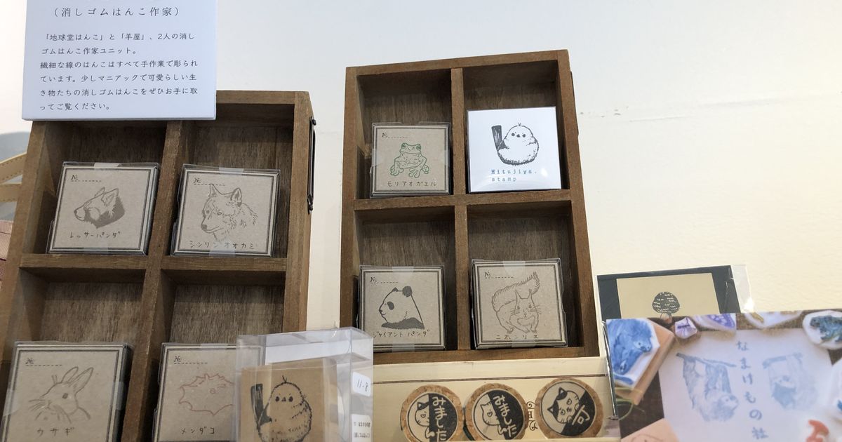 動物を彫ったら世界一 消しゴムはんこ界最強ユニット なまけもの社 武蔵小杉の雑貨屋がギャラリーにて商品やお店の雰囲気を紹介します