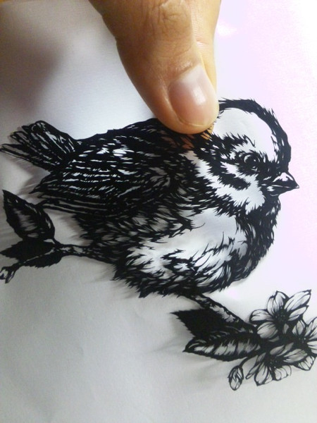 Rumiの日常 切り絵ブログ 切り絵 鳥切り終わり