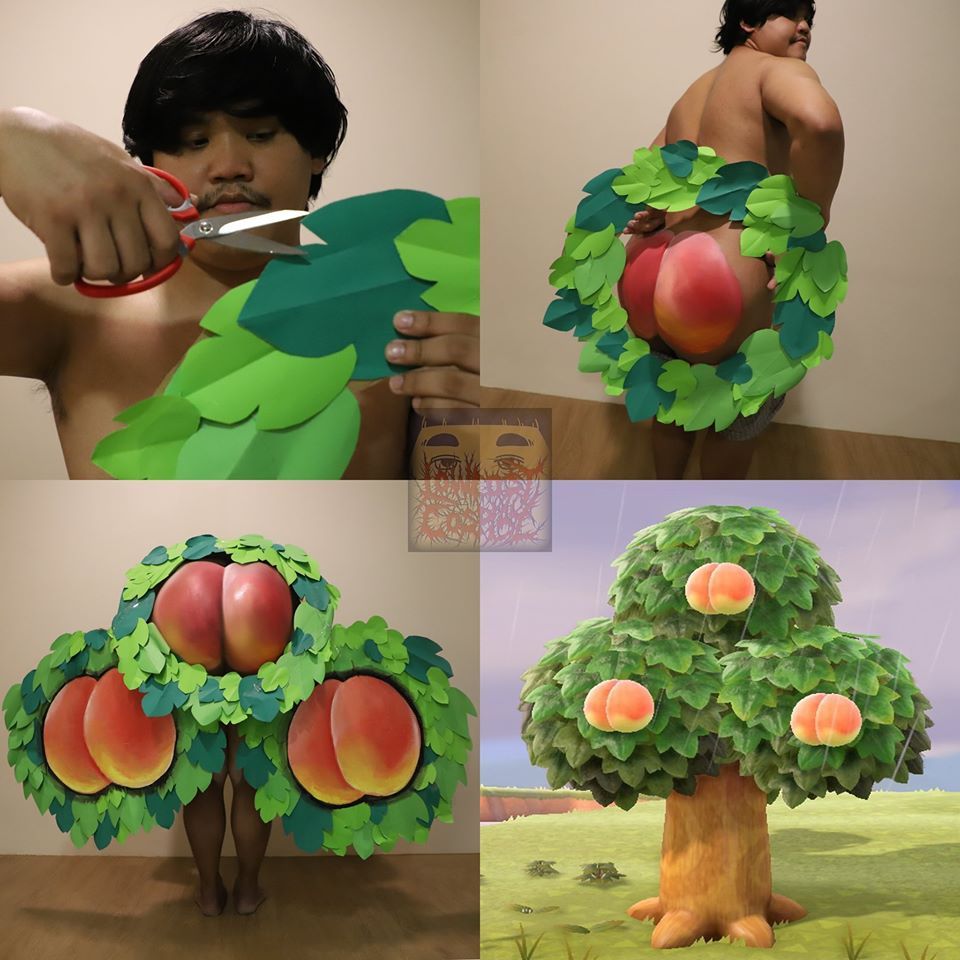 低成本cosplay小哥最新客串了一把 动物森友会 里的狸克和桃子树