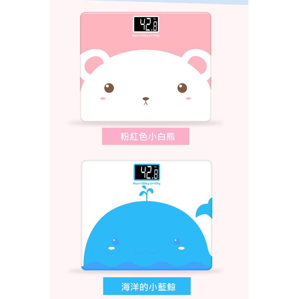 台灣現貨 動物體重計兩款小白熊 小藍鯨體重計5mm強化安全玻璃電子體重秤內附2電池體重機 勾汪雜貨舖 蝦皮購物