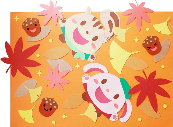 秋 壁面飾り 無料型紙 落ち葉と動物たちの壁面飾りです イラストレーターとまこのひとりごと