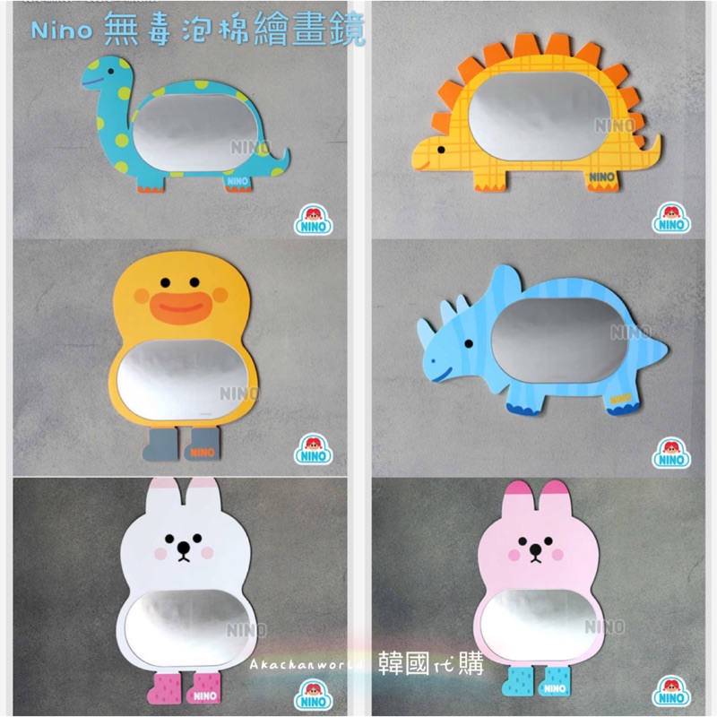 韓國nino無毒泡綿卡通壁面塗鴉鏡 小動物安全鏡子兒童彩繪壁貼鏡 蝦皮購物