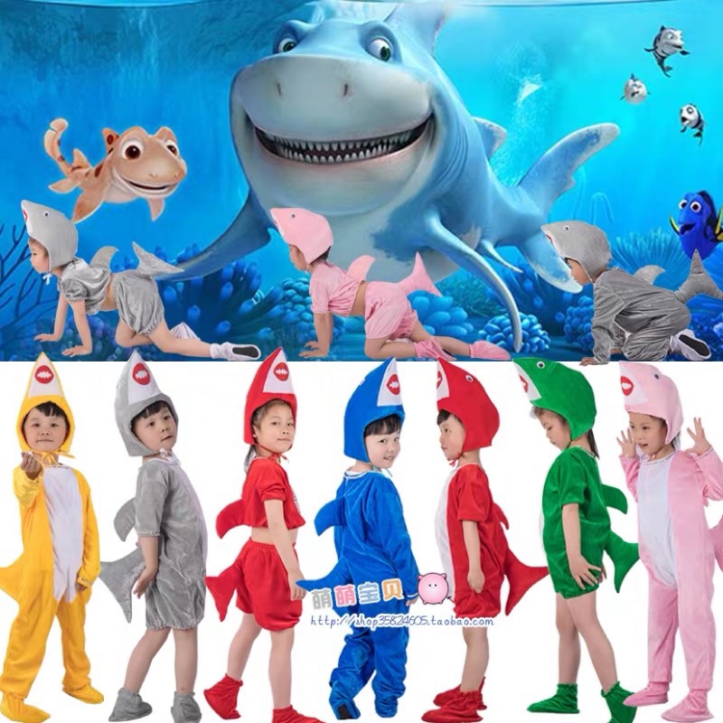 兒童鯊魚演出服裝海洋動物造型表演服夏款裝扮大白鯊主題卡通衣服 蝦皮購物