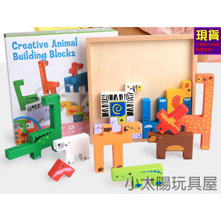 小太陽玩具屋 木製立體動物積木附木盒壘壘樂動物拼圖3d積木立體拼圖寶寶拼圖立體積木3d拼圖7149 蝦皮購物