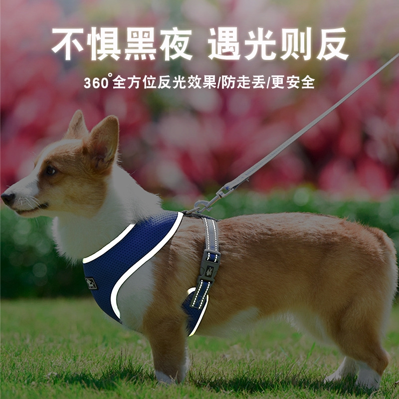 新款寵物反光胸背帶透氣網布胸背中小型狗狗牽引繩寵物用品 蝦皮購物