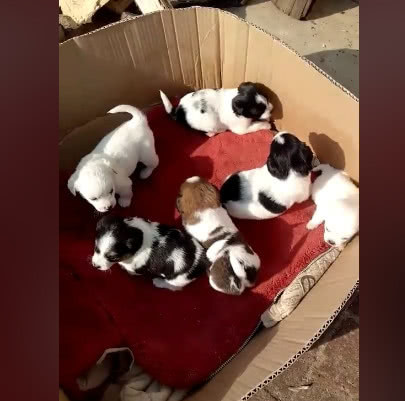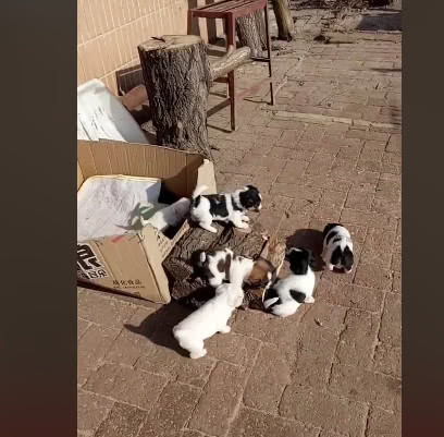 六只小奶狗被主人丢弃 天气太冷 小奶狗抱团取暖