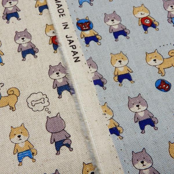 犬柄 生地 綿麻キャンバス 布 ファブリック 手芸 コットンこばやし ワンコ 動物 きなり ブルー 系 Kts6636 コットンハウスセシール 生地 通販 通販 Yahoo ショッピング