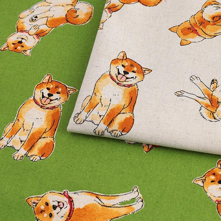 Amazon 綿麻キャンバス 生地 犬柄 生成り 犬 わんこ ワンコ 布 布地 手芸 1m単位 布 生地 通販