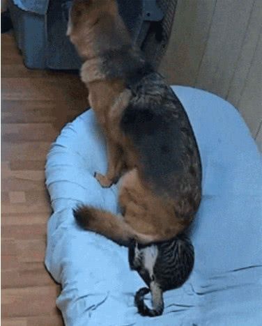 狸猫霸占狗狗的床 狗狗却使出过分的手段 差点把