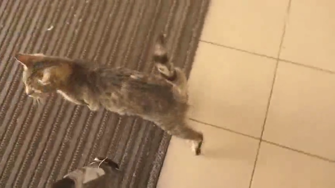 黑猫与狸猫厮斗 黑猫被打趴下 直到另一狠角色出现 这是高手
