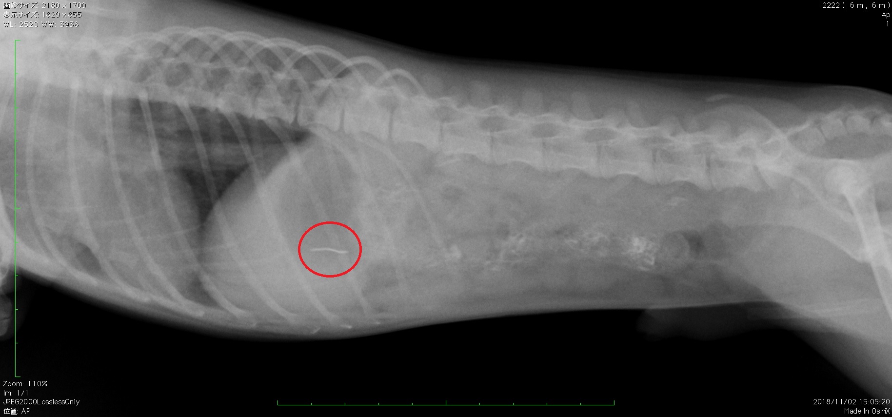 異物 縫い針 の誤食 淀川中央動物病院