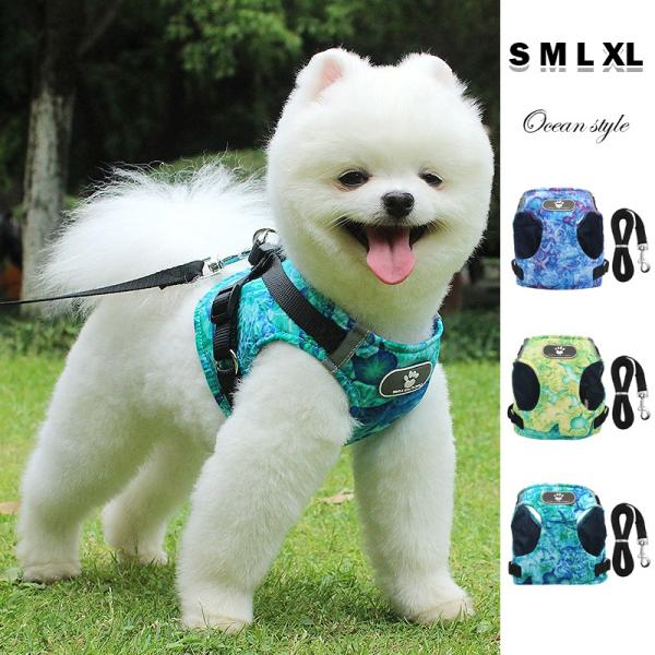 Yurika Sale 犬 ハーネスリード 小型犬 胴輪 おしゃれ ペット 猫犬用 ベスト 通気性 メッシュ ソフト犬着物 お出かけ用 シアン 簡単着脱 L 可愛さ倍増のペットグッズ 散歩 サイズ調節可 ドッグ 中小型犬