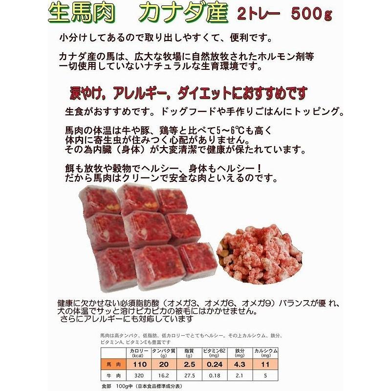 楽天市場 犬の 馬肉 ミンチ 生肉 手作り 食 ごはん トッピング 500g小分けトレー入り お手軽 簡単 無添加 アレルギー体質の愛犬も 新鮮 生食 ダイエット 涙やけ たんぱく 高タンパク 食事 カナダ産 おいしい 帝塚山ワンバナ 冷凍 6600円以上 送料無料 ペットフード