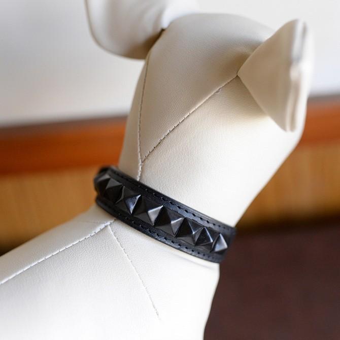 革で作る犬の首輪の専門店 Five Drops 黒革 ピラミッドスタッズ2列首輪