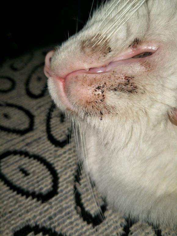 猫咪下巴结痂猫咪皮肤上有黑色结痂 猫咪百科 动物世界网