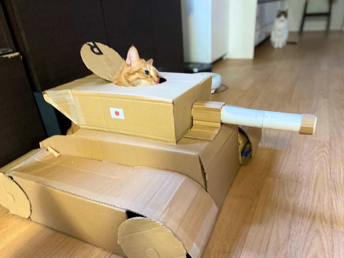 愛猫家に流行中の 段ボール戦車 キャタピラーに乗る元保護ねこの姿に騒然 すさまじいクオリティの高さ Hint Pot Yahoo ニュース