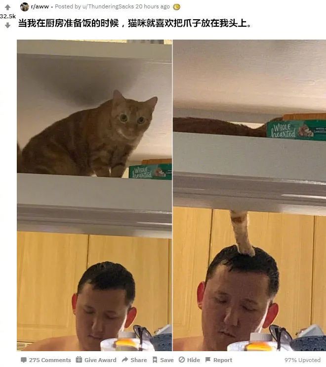 网友准备饭的时候 猫总是把一只爪子按在他头上 让人想不通 大爱猫咪控微信公众号文章
