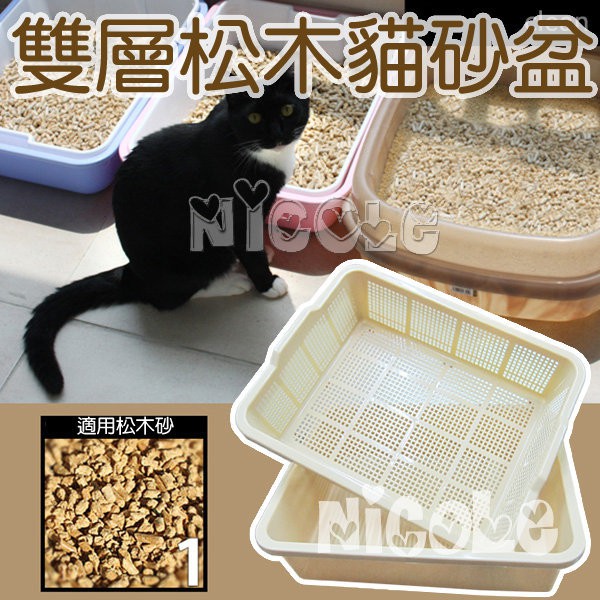 Nicole寵物 單 雙層兩用松木貓砂盆 加高全網格 00a 單層 水晶砂 松木砂 木屑砂 分解型 貓砂屋 貓便盆