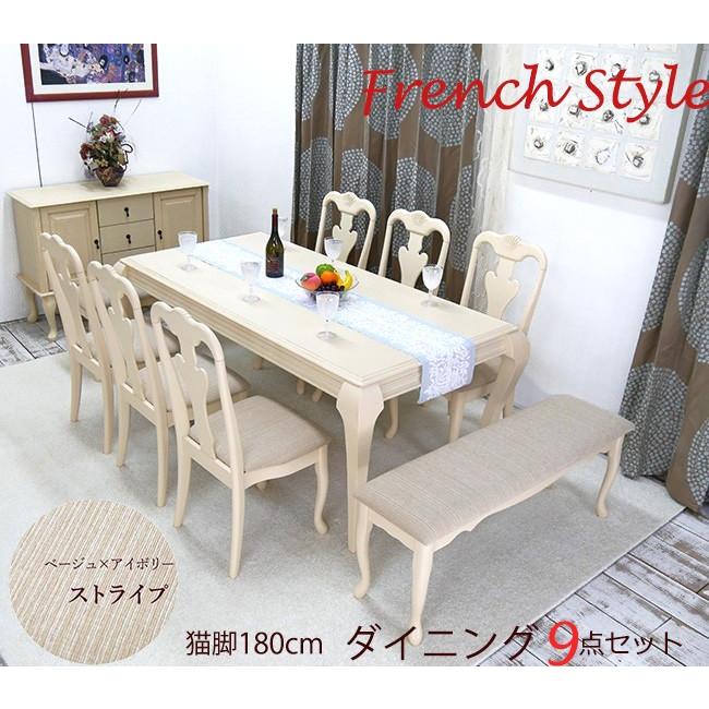 ダイニングテーブル9点セット クラシック調 猫足 クイーンアン 10 12人用 白い アイボリー色 大型180cm ダイニングワイドテーブル チェアベンチ9点セット Qa 180table 2ben6chset Banjo 通販 Yahoo ショッピング