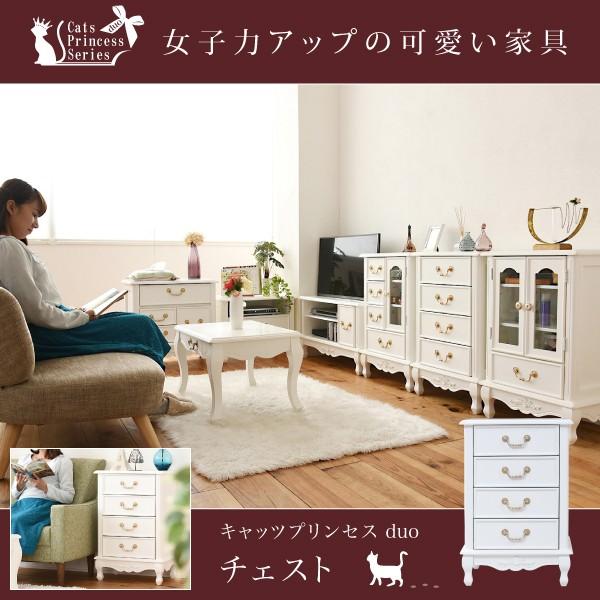 おすすめの猫足可愛い木製猫脚付き 収納タンス アンティーク調 ホワイト 幅50cm 4段 引き出し4杯 姫系 キャッツプリンセス Duo Morekagu モア家具 通販 おすすめおしゃれなインテリア