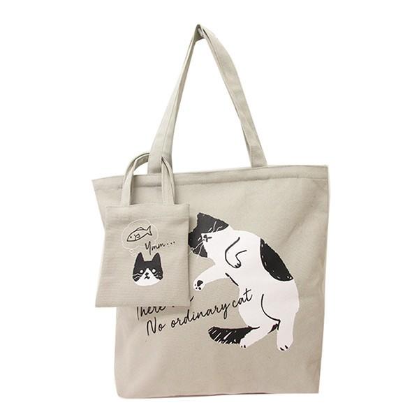 ネコ 上ファスナー トートバッグ ミニバッグが付いて便利 エコバッグ サブバッグ レッスンバッグ 帆布バッグ 猫 ねこ 送料無料 1902201 雑貨屋ブルーリーフ 通販 Yahoo ショッピング