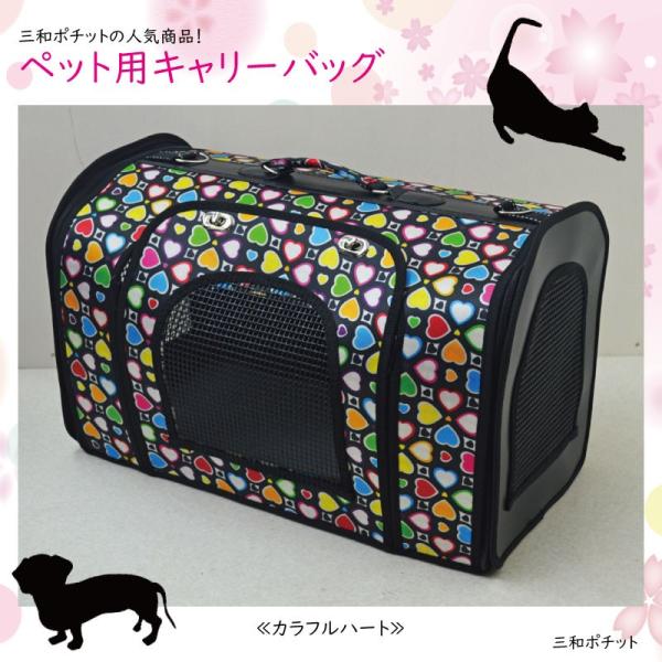 楽天市場 ペットキャリーバッグ ペットキャリー ペット用 猫キャリーバッグ キャリーケース ショルダー 手提げ 通院 軽量 小型犬 猫 うさぎ M 風よけカバー付き ハート柄 ブラウン 送料無料 三和ポチット