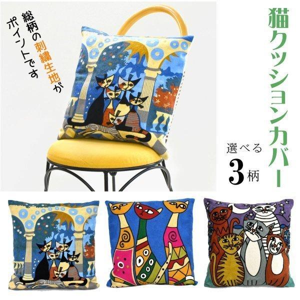ナタリー レテ クッション カバー ル シャ 猫たちのクッションカバー ロイヤルブルー キャッツ
