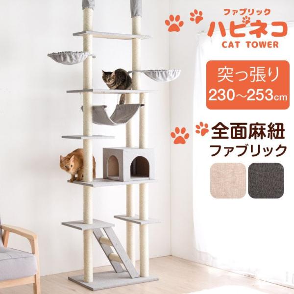 キャットタワー 猫タワー おしゃれ 突っ張り スリム 猫 タワー 高さ230 253cm 支柱3本 突っ張り 爪研ぎ 麻紐 つめとぎ ハンモック タンスのゲンpaypayモール店 通販 Paypayモール