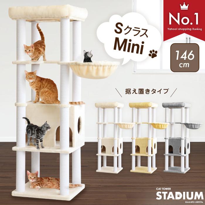 キャットタワー Stadium Mini 据え置き キャットタワースタジアム ミニ 146cm 小型 中型 猫向け ハンモックトレー 落下防止柵 猫 Nl Spj01 Liv House 通販 Yahoo ショッピング