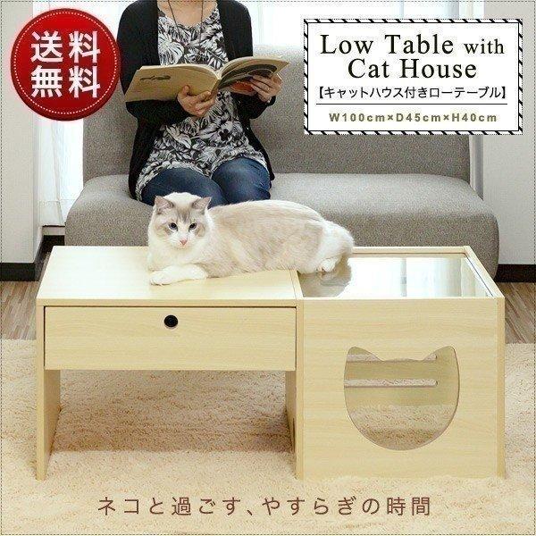 ローテーブル ナチュラル 猫ハウス付きのおしゃれなデザイン 公式 Lowya ロウヤ 家具 インテリアのオンライン通販