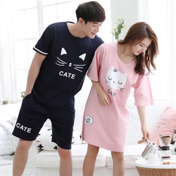 Amazon ペアルック ルームウェアペア パジャマ 男女 ペア 寝巻き ルームウェア 上下セット ワンピース カップルペア お揃い カップル ペアルック 夏 パジャマ ペア 部屋着 ルームウェア 猫柄 可愛い 結婚祝い ギフト 日常可 パジャマ ルームウェアセット 通販