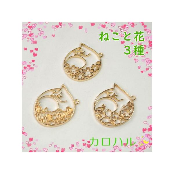 ゴールド 花とねこチャーム 3種 各2個入り 花 ねこ レジン枠 モチーフ枠 レジンクラフト 猫 フレーム枠 アクセサリーパーツ ペンダント C440 カロハル Yahoo 店 通販 Yahoo ショッピング