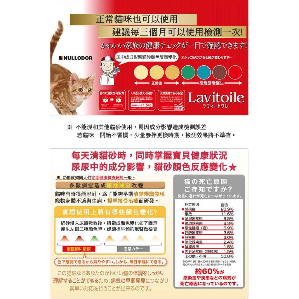 Nullodor 芮娜紅色檢測貓砂 3 3l 產品特色