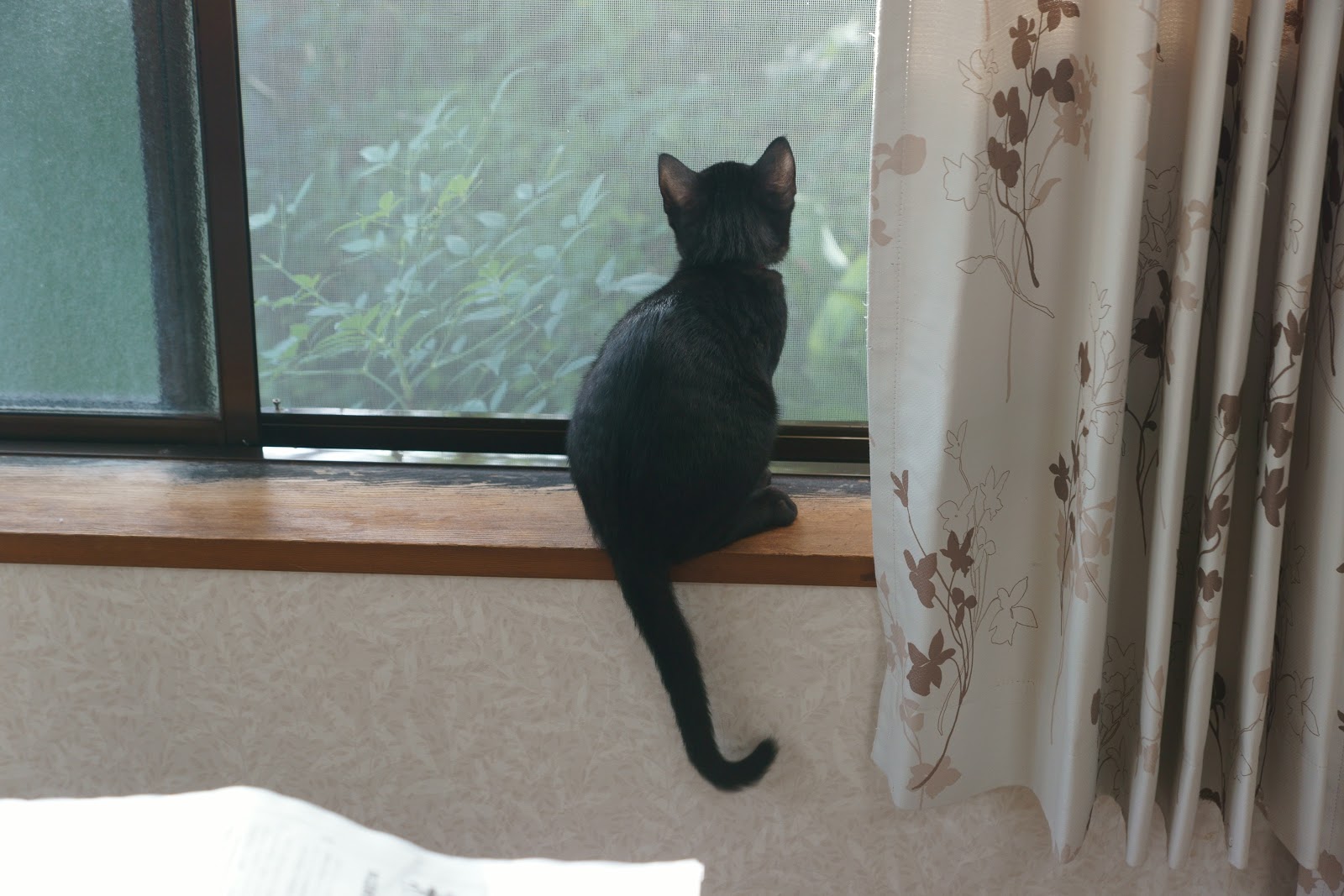 踏ん張ってる後ろ姿 猫の小梅さ ん