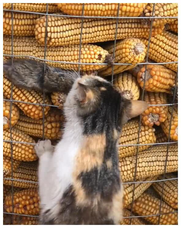 猫咪负责看守玉米堆 见到老鼠捕获 一招制敌让人拍手称赞 结果