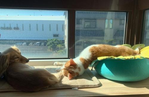 猫咪真不愧称为液体猫 旁边的狗狗都看呆了 新浪新闻