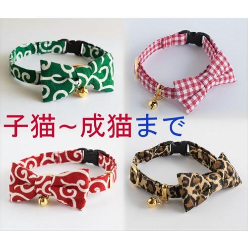 楽天市場 猫 首輪 リボン 唐草 赤 蝶ネクタイ セーフティーバックル付 鈴付 猫用 からくさ 猫雑貨招福 猫雑貨 招福